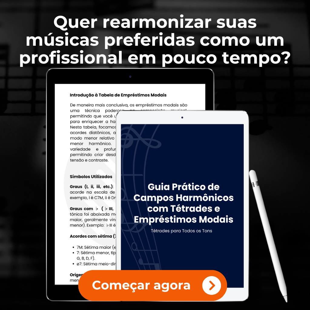 → Aprenda no conteúdo abaixo mais sobre os campos harmônicos e veja todas as tabelas, incluindo o campo menor melódico e harmônico.